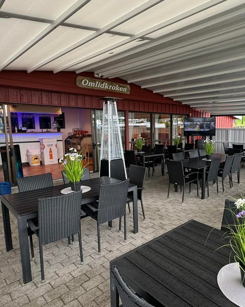 På den andre siden av bygget finner du sommerhandelen med butikk og isbar
